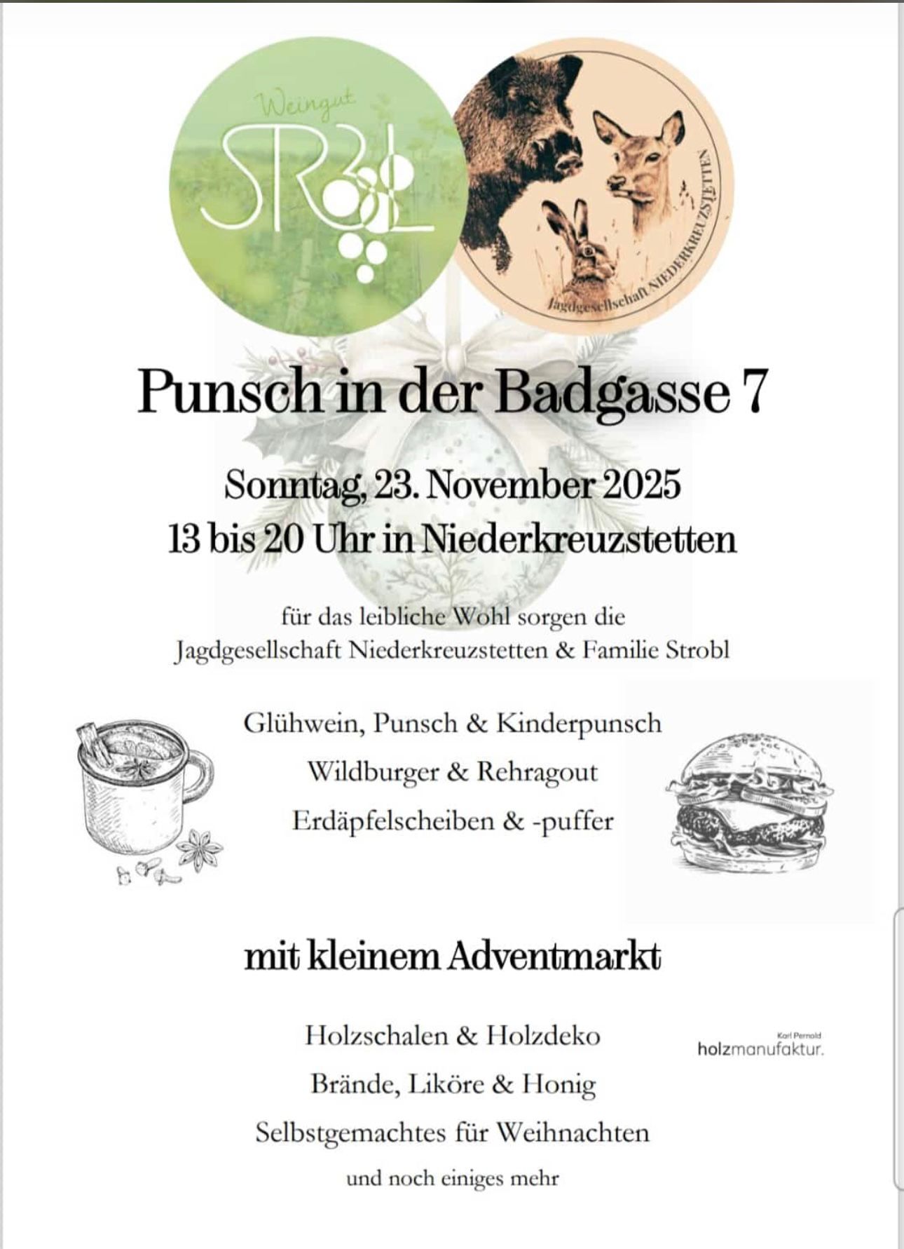 Am Sonntag, dem 24.11.2024 stelle ich meine Werke beim "Punsch in der Badgasse 7" in Niederkreuzstetten aus.